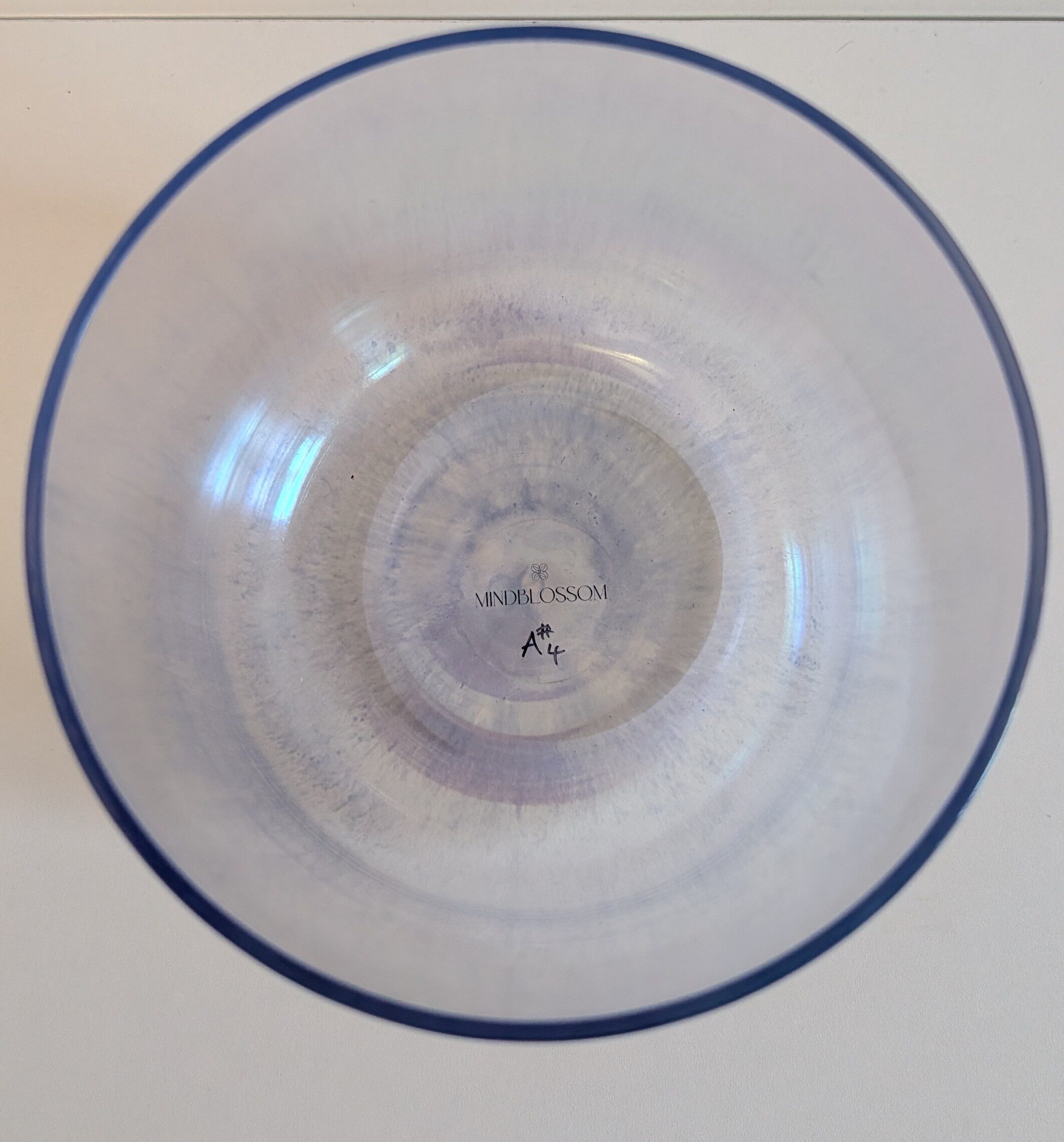 Diese handgefertigte Mindblossom Bowl® ist ein einzigartiges Klanginstrument aus 99,9% Quarzkristall. Sie ist in der Grundstimmung 432Hz gefertigt und spielt den Ton A#4, der dem zwischen drittem Auge und Kronen-Chakra zugeordnet ist.
