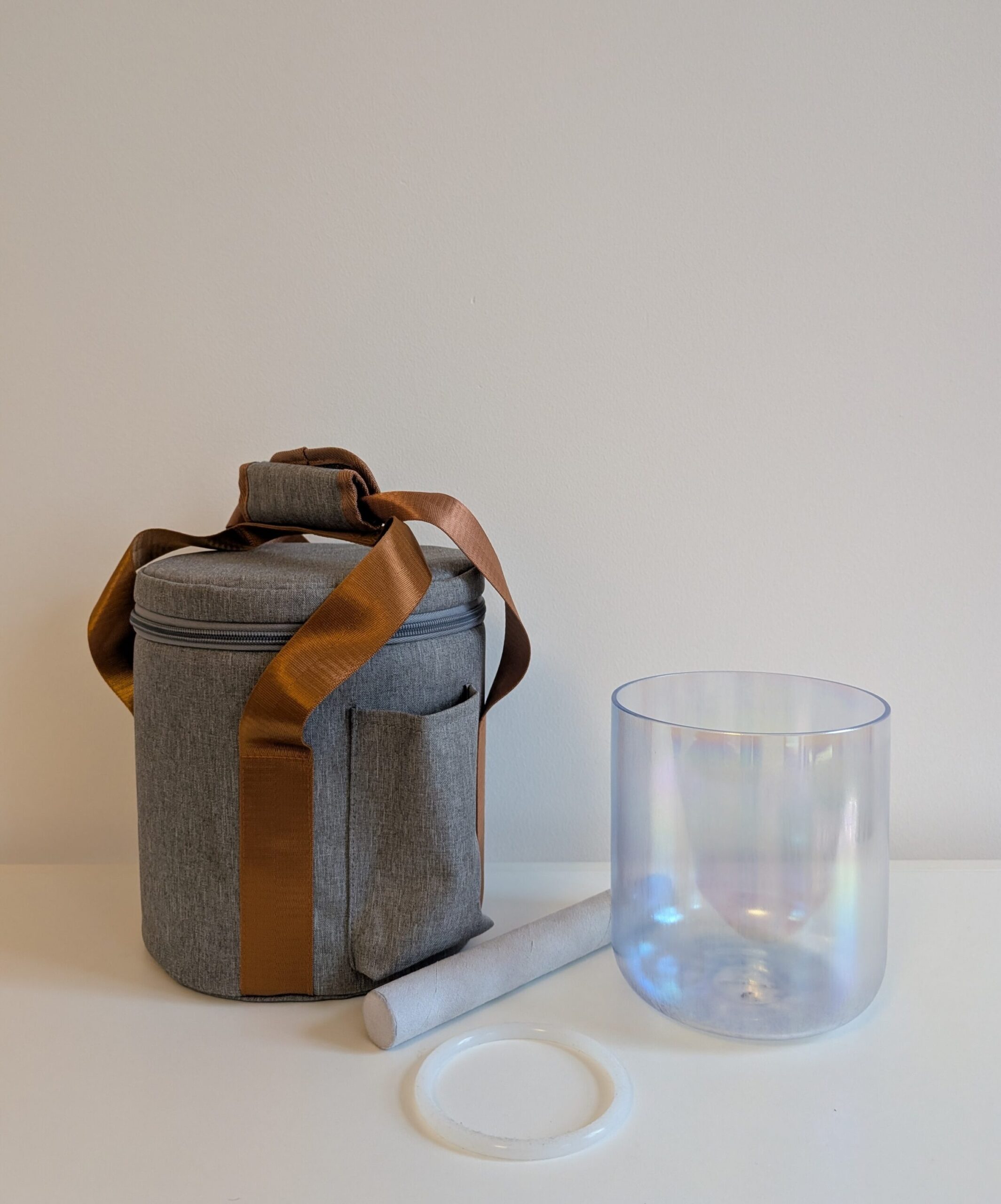 Die Bowl wird inklusive Silikonring und einem feinen Kunstlederschlägel geliefert. Für die Spieltechnik des weichen Bowings empfehle ich den rauen Kunstlederschlägel, für das Kreisen am Rand den feinen Silikonschlägel.