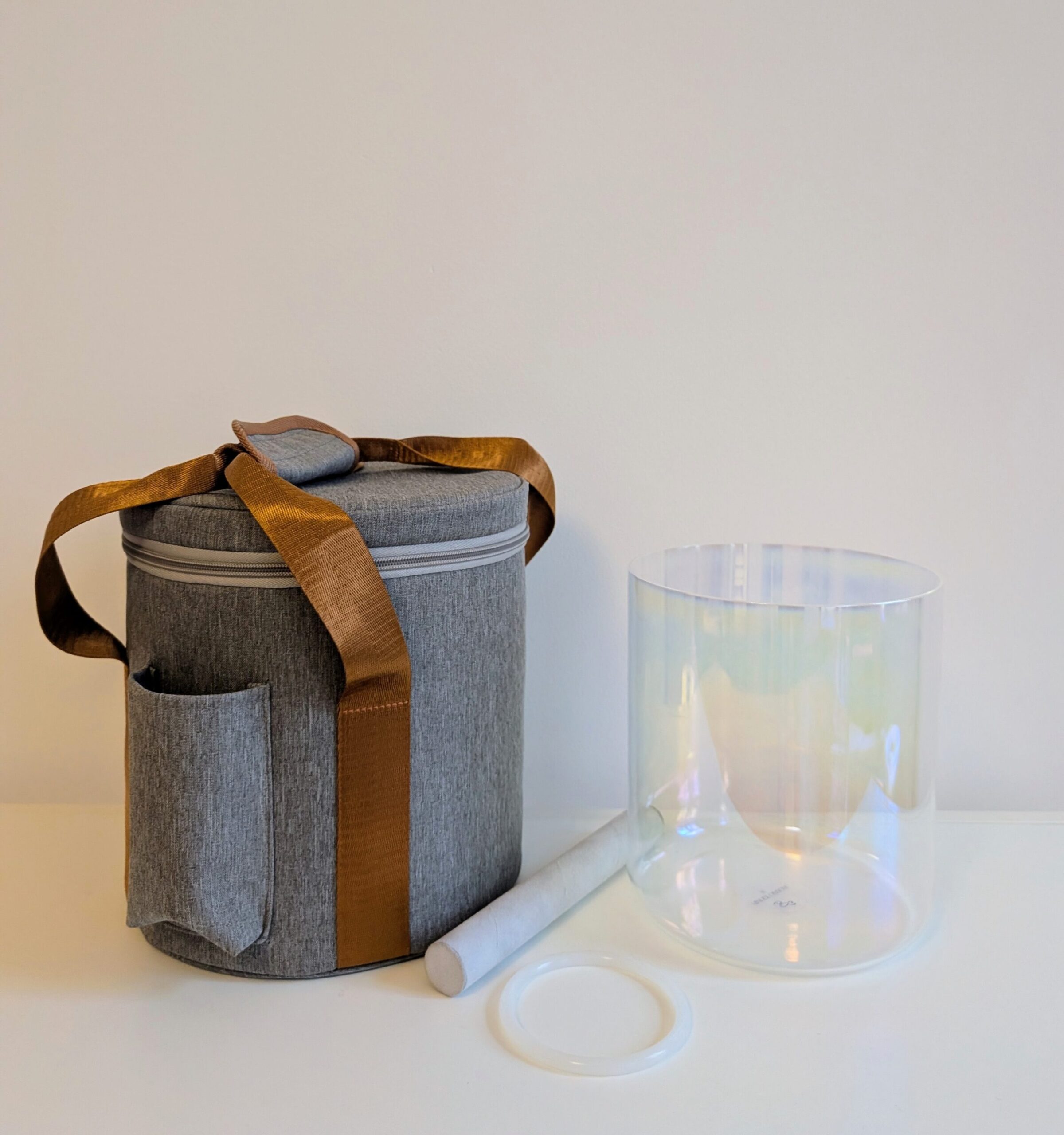 Die Bowl wird inklusive Silikonring und einem feinen Kunstlederschlägel geliefert. Für die Spieltechnik des weichen Bowings empfehle ich den rauen Kunstlederschlägel, für das Kreisen am Rand den feinen Silikonschlägel.