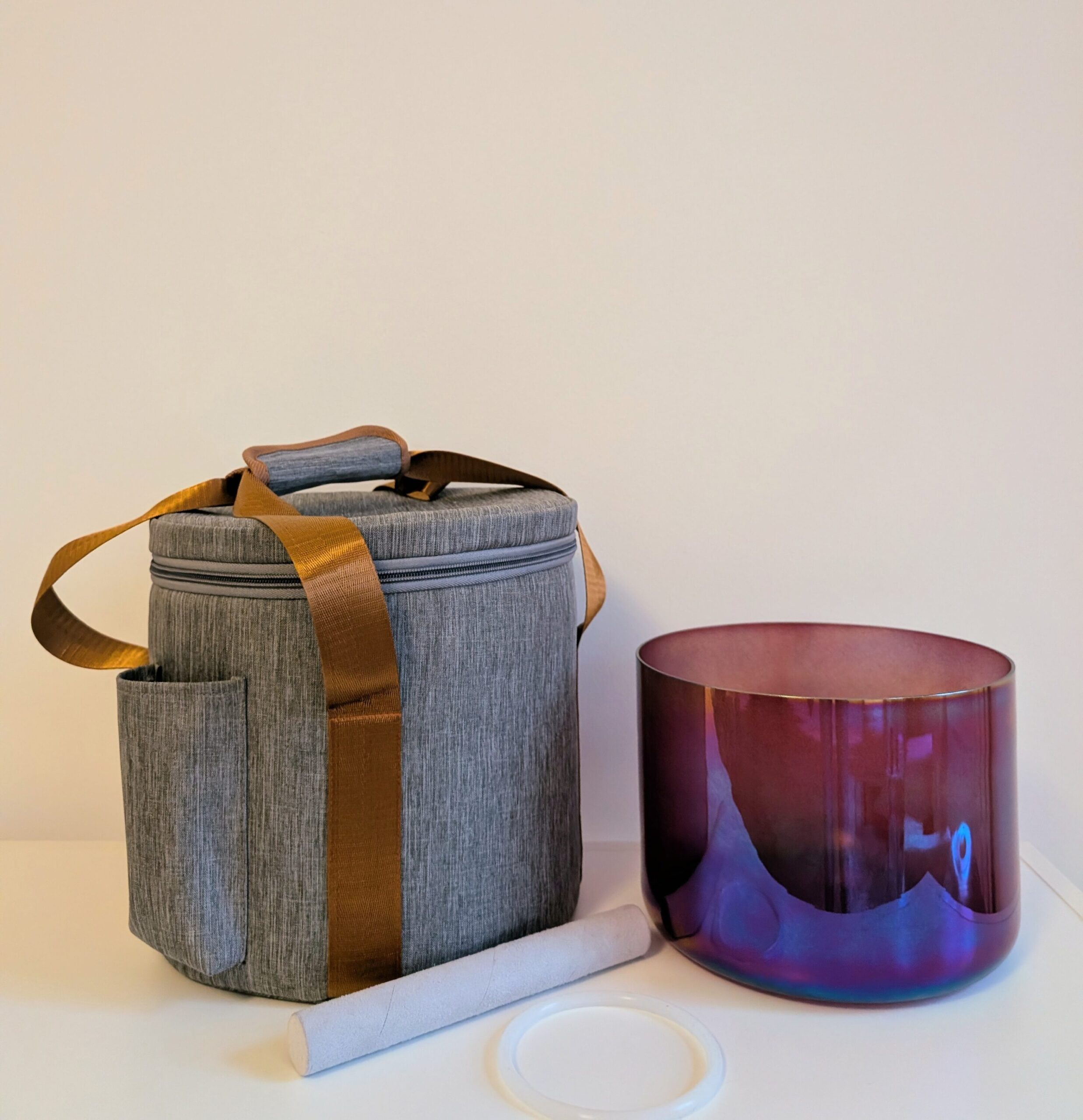 Die Bowl wird inklusive Silikonring und einem feinen Kunstlederschlägel geliefert. Für die Spieltechnik des weichen Bowings empfehle ich den rauen Kunstlederschlägel, für das Kreisen am Rand den feinen Silikonschlägel.
