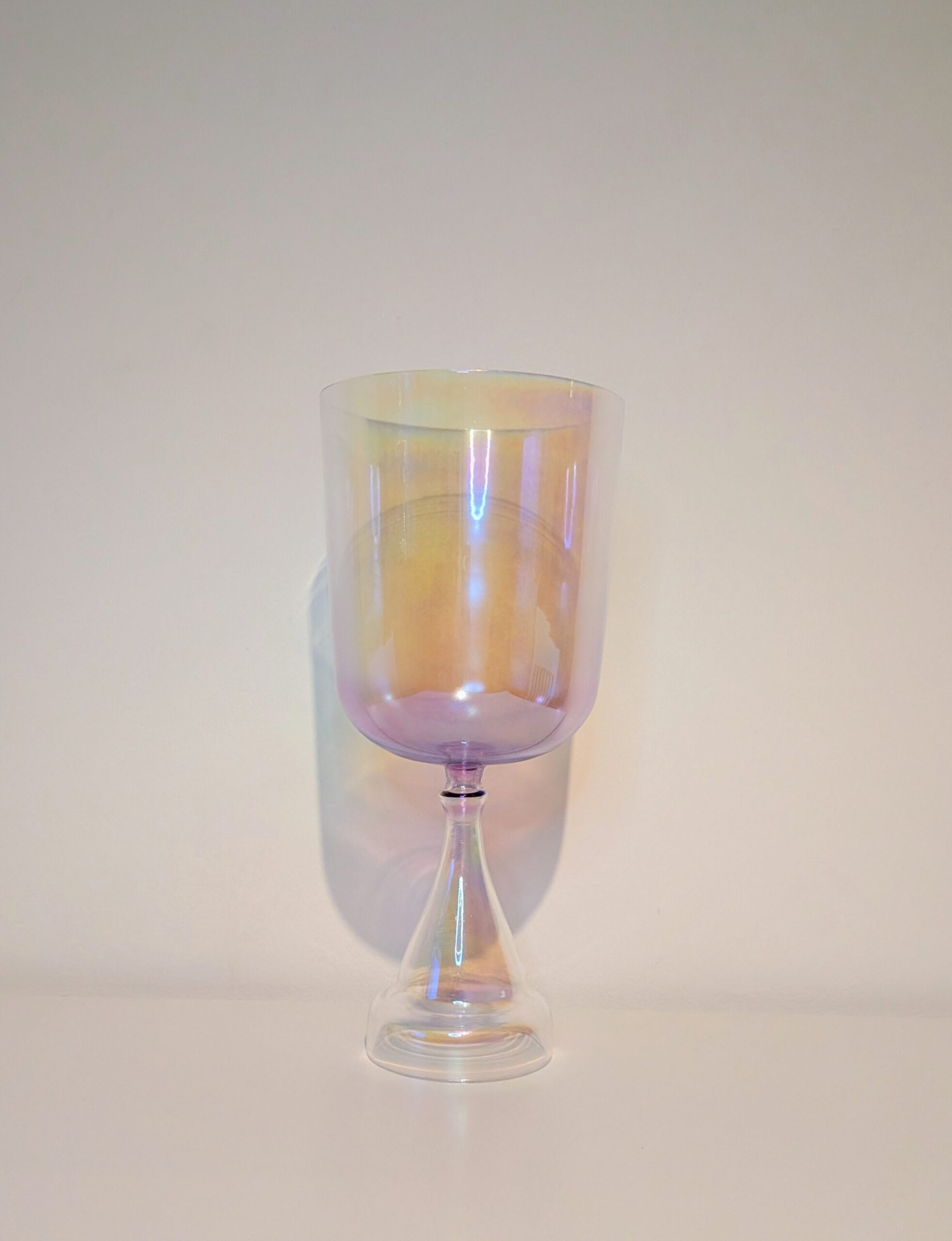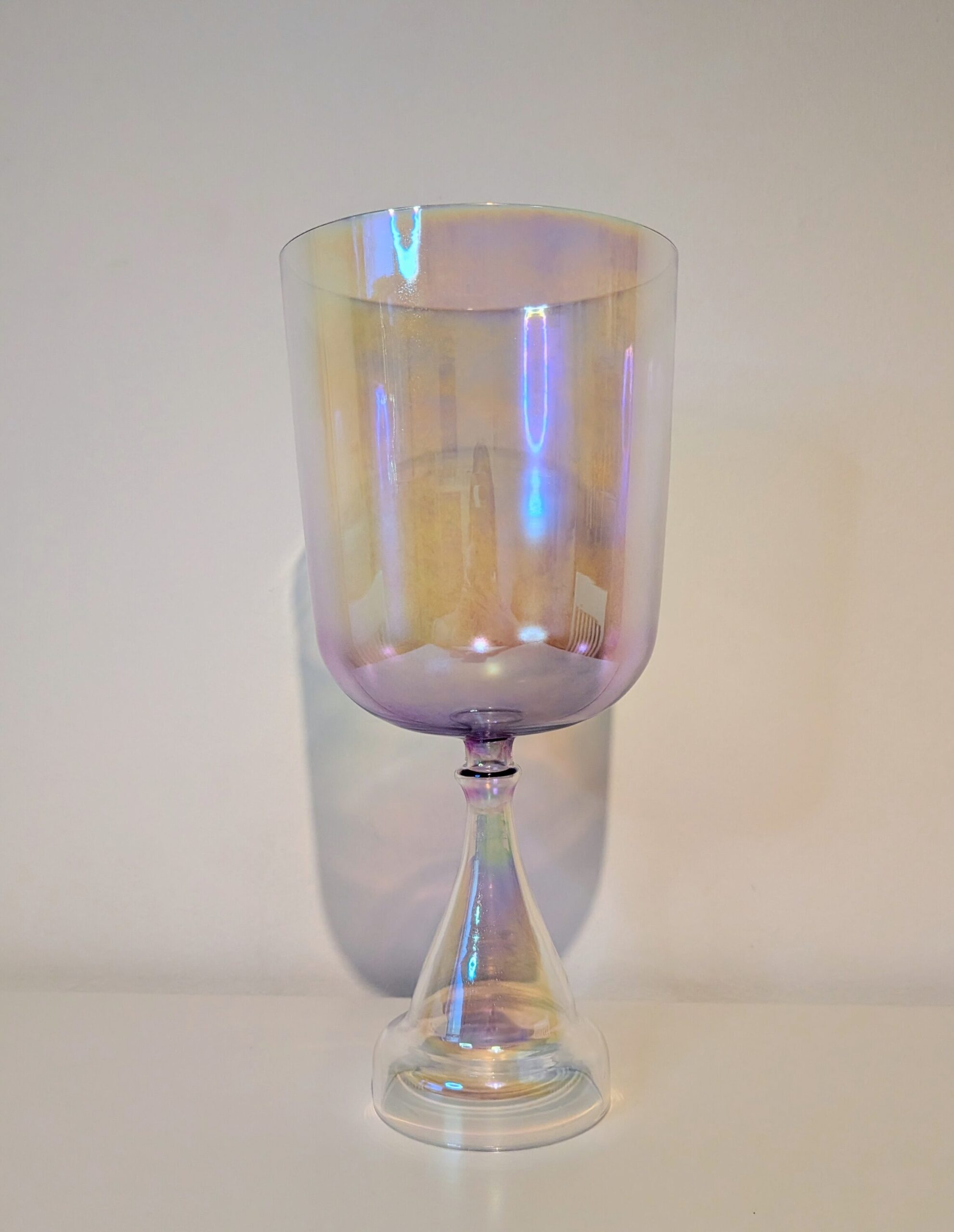 Der Grail (deutsch: Kelch) ist wie die Practitioner Bowl eine ganz besondere Form der Kristallklangschale. Dank seinem Griff kannst Du Dich mit dem Grail flexibel und frei im Raum bewegen und durch leichtes Schwenken die Klangwellen sanft beeinflussen und sogar verlängern. Im Vergleich zur Practitioner Bowl bietet der Grail den Vorteil, dass Du ihn sogar schon wieder abstellen kannst, während er noch klingt, da der Klang weiterhin schwingt, wenn er auf dem Fuß aufgestellt wird. Die Practitioner Bowl muss erst vollständig ausgeklungen sein, bevor du sie wieder kopfüber auf dem Boden platzieren kannst.