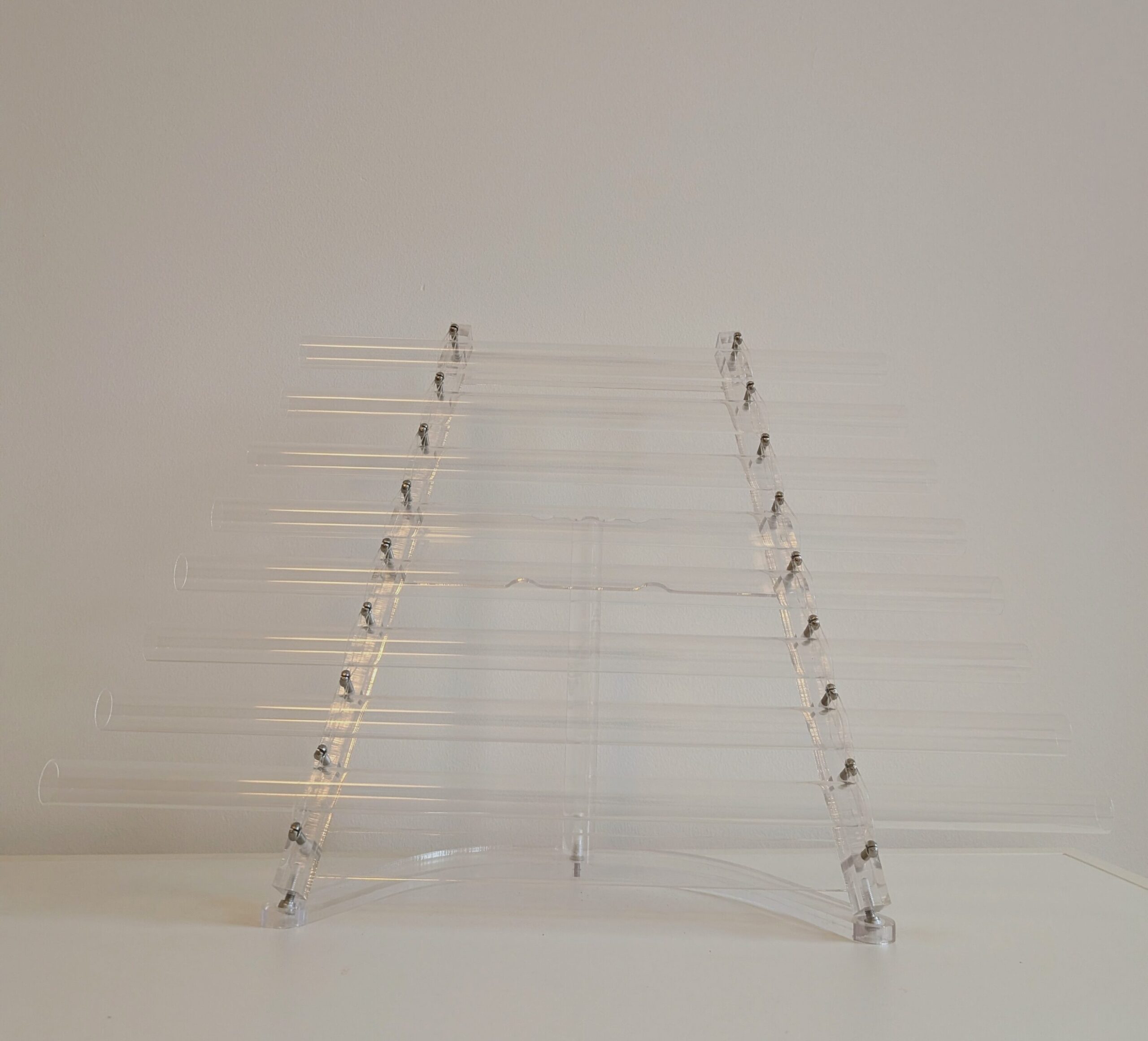 Die Kristallharfe besteht aus 8 Klangröhren der C-Dur Tonleiter, von C4 bis C5. Wie die Mindblossom Bowls® wird sie aus 99,9% Quarzkristall in Handarbeit gefertigt. Im Vergleich zu anderen Kristallharfen oder -lyras ist sie in ihrer Größe kompakt und handlich sowie dem Gewicht sehr leicht. Damit ermöglicht sie Dir ein entspanntes Spiel, das Du in Bewegung drinnen oder im Freien gestalten kannst. Jedes Anschlagen sowie leichtes Schwingen nach vorne und hinten erzeugt wundervoll pulsierende Klangwellen, die Du wie bei der Practitioner Bowl und dem Grail auch individuell beeinflussen und verlängern kannst.